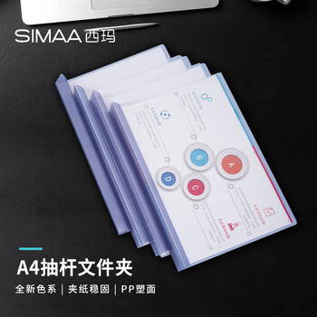 西玛(SIMAA)5只A4透明拉杆夹/抽杆夹/报告夹/文件夹 25mm大背宽简历报告夹 学生考试收纳 6153透明色