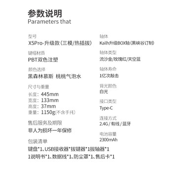 黑峡谷(Hyeku)X5Pro无线蓝牙有线三模键盘108键PBT键帽 桃桃气泡水凯华BOX天空蓝轴