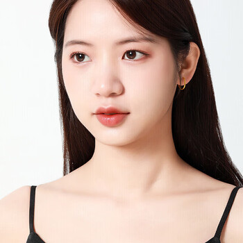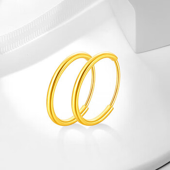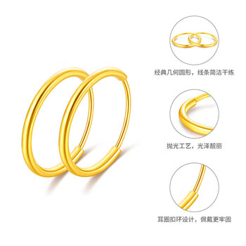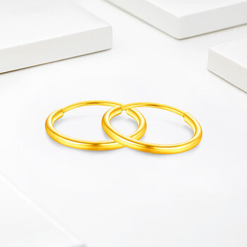 梦金园 圣诞礼物 18K金耳环AU750彩金素圈光面耳饰送女友生日礼物