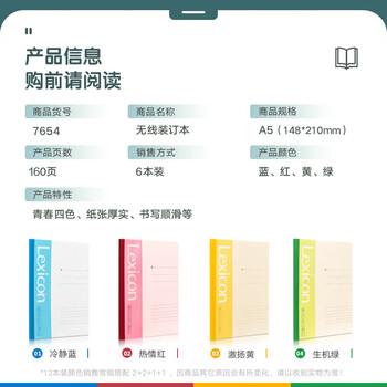 得力(deli)6本A5/80页无线装订本软抄本记事本笔记本子 7654 规格:A5/80页无线装订本