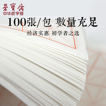 荣宝斋 米字格宣纸 日星宣纸半生熟书法专用练习作品 文房四宝初学毛笔字 半生熟-7.5cm*32格/100张