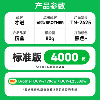 才进适用兄弟TN-2425粉盒MFC7895dw DCP-7195dw 7190 7090dw L2550dw 2535dw HL2595dw打印机TN2412 2448硒鼓