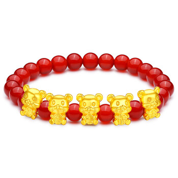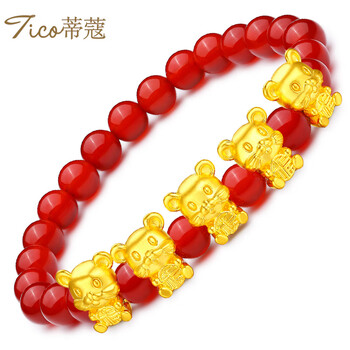 蒂蔻(Tico)生日礼物本命年足金生肖五福鼠黄金转运珠手链女5D金老鼠红玛瑙