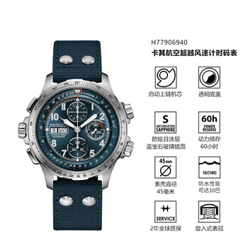 汉米尔顿(Hamilton)汉密尔顿卡其航空超越风速计时码表抗磁硅质游丝45迷彩风暴手表男