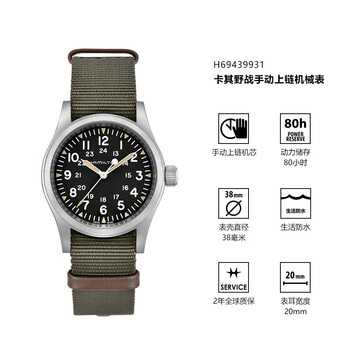 汉米尔顿(Hamilton)汉密尔顿卡其野战手动上链机械表瑞士手表《刺猬索尼克》电影同款