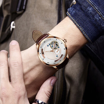 上海(SHANGHAI)手表男款 男士卡罗素旋转贝母表盘夜光指针手动陀飞轮手表6711