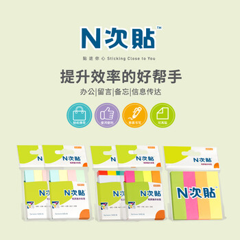 N次贴(STICKN)四色荧光色纸质标示便条分条便利贴便签纸记事贴 大小册 12条1200张