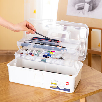 得力(deli)大号多功能便携学生美术工具箱学生画笔收纳箱绘画画手提箱考试68303