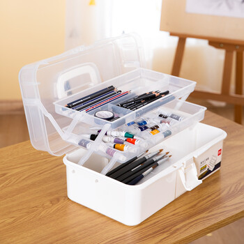 大号美术工具箱×1(画笔水彩颜料收纳箱)