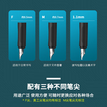 F尖钢笔*1 M笔尖笔头*1 1.1mm笔尖笔头*1 黑色墨胆*6