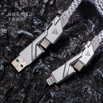 TEGIC大岩蛇max100W银色四合一苹果数据线PD快充双typec适用于兼容华为mate系列iphone15笔记本电脑手机