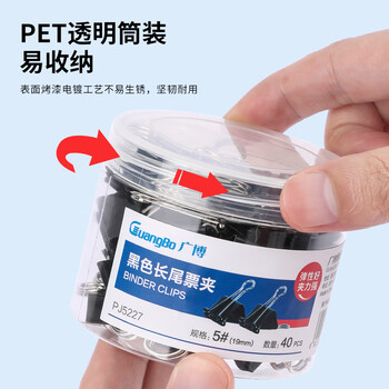 广博(GuangBo)24只装长尾夹子41mm燕尾夹长尾票夹黑色PJ5230