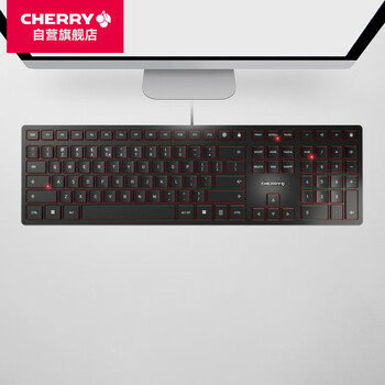 CHERRY樱桃 KC6000有线键盘 电脑薄膜键盘 办公商务家用键盘 超薄SX剪刀脚 轻音全尺寸 黑色