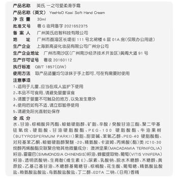 英氏儿童柔滑护手霜 恒润手霜 护肤霜 优护预防干裂纤柔润手霜30ml