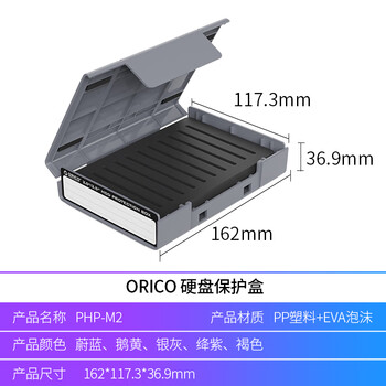 奥睿科(ORICO) M.2 SSD固态硬盘收纳保护盒 防震/抗压/耐摔/带标签/可叠放保护套 灰色PHP-M2