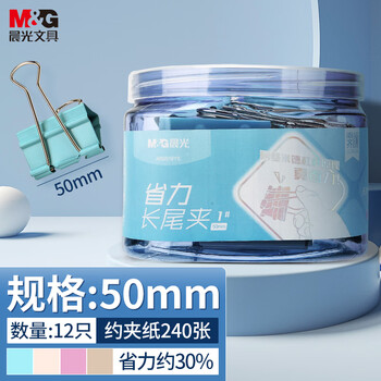 晨光(M&G)文具12只50mm省力长尾夹票夹 1#彩色金属燕尾夹 霁颜系列票据夹子 办公用品ABS916Y5