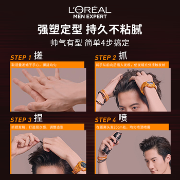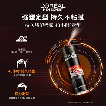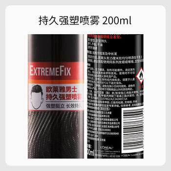 欧莱雅男士强塑定型三孔喷雾200ml 发胶喷雾 持久支撑发型 定型喷雾男
