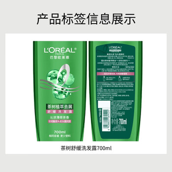 欧莱雅茶树植萃洗发水控油去屑舒缓洗发露700ml(男士 女士 无硅油 )
