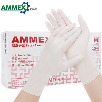 爱马斯(AMMEX)一次性手套乳胶100只中号橡胶牙科诊所家务清洁美容洗碗检查手套