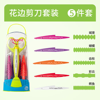 马培德(Maped)手工DIY创意剪裁 安全不易伤手 握感舒适 学生幼儿美工花边剪刀 601005CH随机颜色【5种刀头/套】