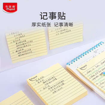 马培德(Maped)横线记事贴 简单易撕 随用随取 日常备忘录 办公记事本 学习笔记便利贴 771110AA【66张/本】