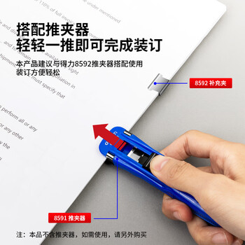 得力(deli)【超级爆款】50枚推夹器夹纸器补充夹子 新型票夹补充夹 办公用品 8592