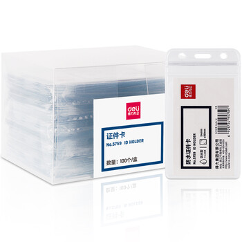 得力(deli)100个竖式防水工作牌证件卡套工作证员工牌公交卡套饭卡门禁地铁卡套身份证 学生办公胸牌透明5759