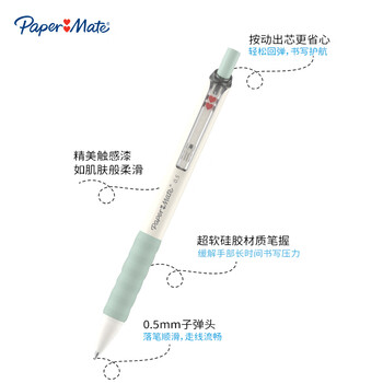 【开学必备】缤乐美(Paper Mate)中性笔0.5mm速干高颜值按动式学生棉花糖绿色笔身G120黑色单支装