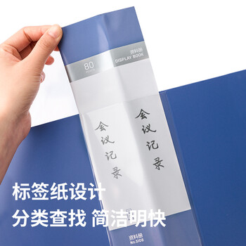 得力(deli)A4/80页大容量中小学生资料册文件活页收纳册插袋档案文件夹票证保护收纳 办公用品蓝色5108