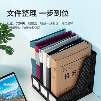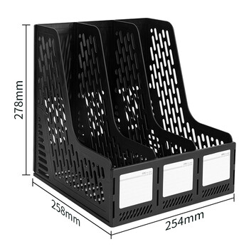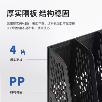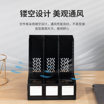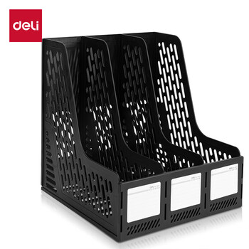 得力(deli)三联镂空桌面文件框栏书立架档案收纳盒 办公室带标签资料文件置物架书本资料收纳神器 黑色9845