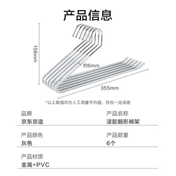 生活日用---衣物洗晒/护理用具---衣架/夹京东京造PVC浸胶Z型裤架6个装
