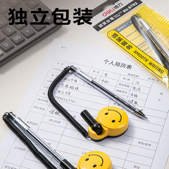 得力(deli)黑色微笑办公桌面台笔 0.5mm子弹头可粘贴台式中性笔单支 办公用品6793