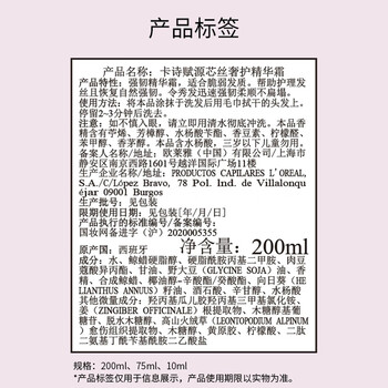 卡诗元气姜精华霜护发素200ml生姜滋养秀发柔顺亮泽水润强韧