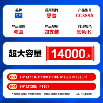 格赞适用惠普m1136硒鼓m126a 388a 88a cc388a墨盒p1108 p1106墨粉p1007 p1008 m1213nf打印机m128fn粉盒超大4支