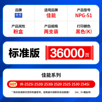 格赞 NPG-51粉盒适用佳能2525i墨粉Canon IR 2520i硒鼓2530i墨盒2520 2525 2530 2545i打印机G51碳粉2支装