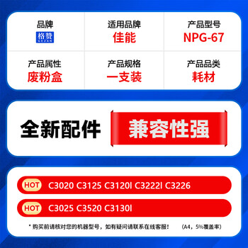 格赞NPG-67废粉盒适用佳能C3222l墨盒C3020墨粉C3130L C3120L C3125墨粉盒C3226硒鼓C3320打印机C3530废粉仓