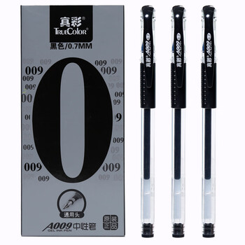 真彩(TRUECOLOR)0.7mm黑色中性笔经典办公子弹头拔帽签字笔商务水笔学生考试文具用品刷题笔热门商品 12支/盒 A009