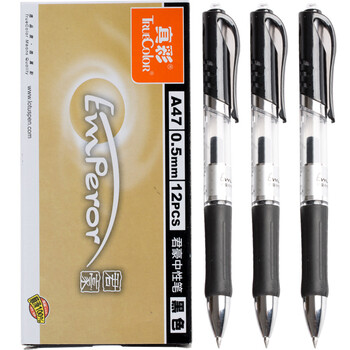真彩(TRUECOLOR)滑丽芯按动中性笔0.5mm黑色子弹头商务办公签字笔水笔学生考试文具用品会议记录笔12支/盒A47