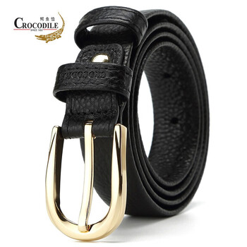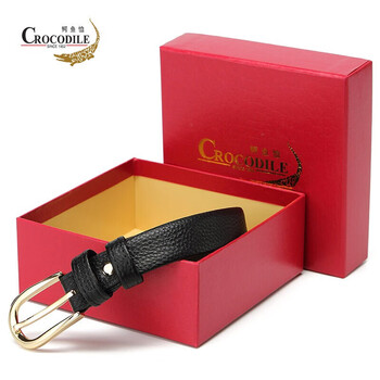 鳄鱼恤腰带时尚头层牛皮软女士简约针扣皮带生日礼物11430黑送女友