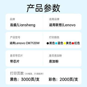 连盛适用 联想cm7120w硒鼓专用 Lenovo CM7120W粉盒 四色大容量