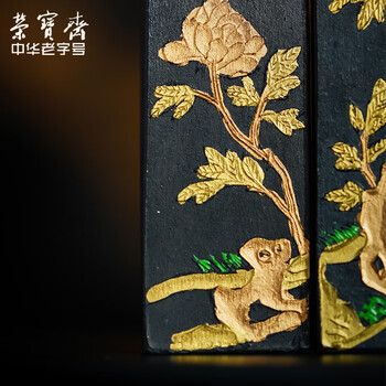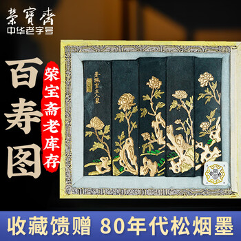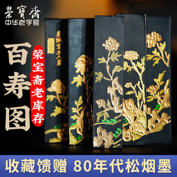 荣宝斋 墨锭松烟 80年代老墨传统手作墨条墨块徽墨 文房四宝毛笔书法国画收藏礼品盒 百寿图套墨