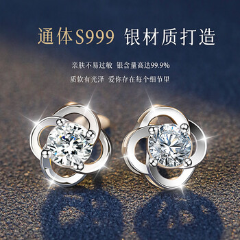 珠宝首饰---时尚饰品---耳饰曼禾(MANHE)S999银幸运四叶草耳钉