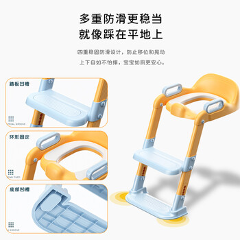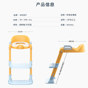世纪宝贝(babyhood)儿童马桶辅助器 宝宝阶梯架坐便圈扶手架座便器 PU软坐垫 清新橙