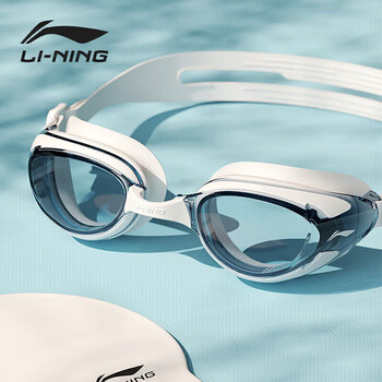 李宁LI-NING泳镜防水防雾男女高清游泳眼镜平光游泳镜LNJT224-5初雪白