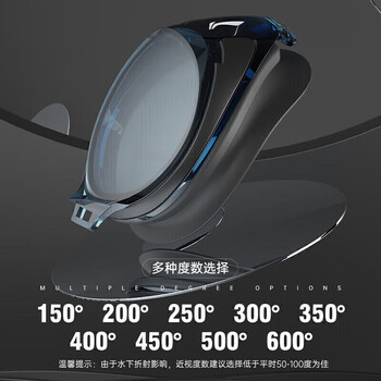 李宁(LI-NING)泳镜防水防雾男女高清游泳眼镜平光游泳镜LNJT224-10暗夜黑