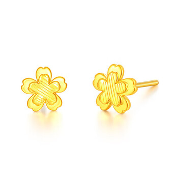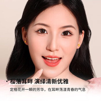 梦金园黄金耳钉樱花足金耳环5D硬金送老婆