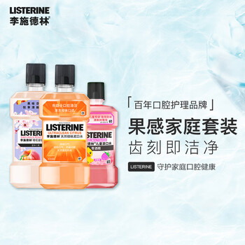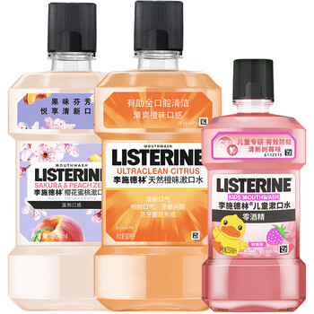 李施德林(Listerine)漱口水橙子500ml+樱花500ml+树莓250ml清新口气深层
