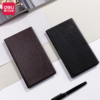 得力(deli)90袋(180枚)摊开式硬皮名片册 商务便携名片收纳夹 红棕色