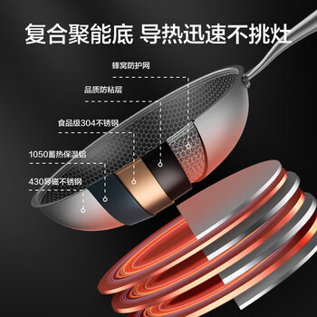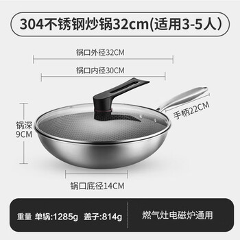 京东京造 炒锅 304不锈钢炒菜平底不粘煎锅电磁炉燃气灶【可立盖】30cm