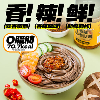 云山半0脂肪香辣香菇酱250g 低脂0添加蔗糖蘑菇酱辣椒酱轻食健身拌面酱